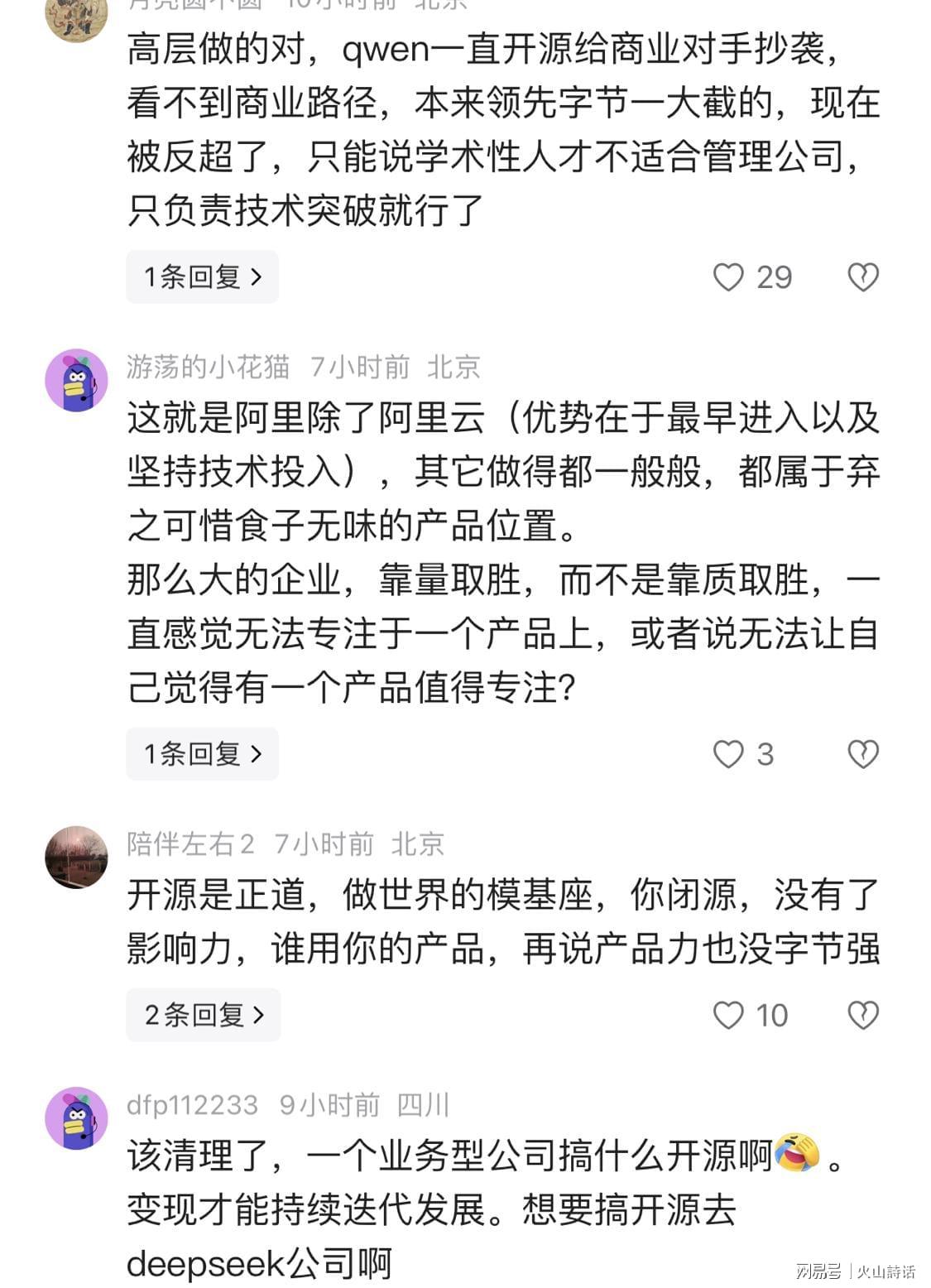 针对此事,有网友表示,高层做的对,qwen一直开源给商业对手抄袭,看不到商业路径,本来领先字节一大截的,现在被反超了,只能说学术性人才不适合管理公司,只负责技术突破就行了。